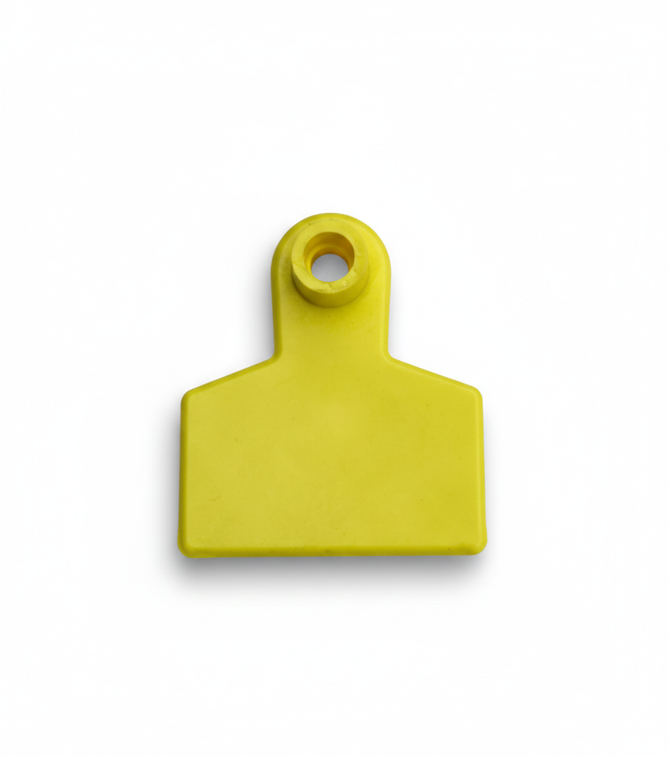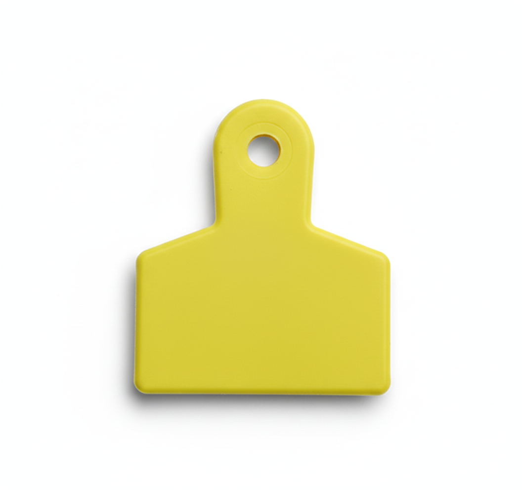 chapeta u orejera para ganado, elaborado en poliuretano (TPU) tamaño 50 mm X 45,  flexibles, resistentes, con proteccion UV, con capsula abierta para ser reutilizada